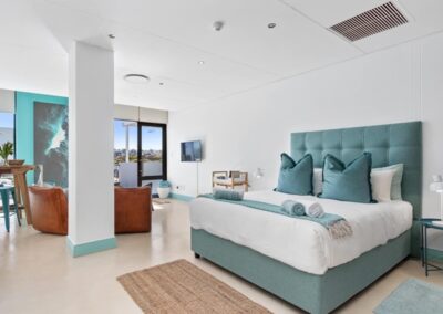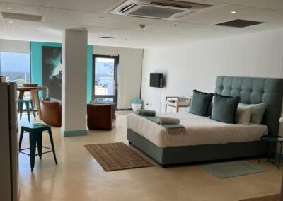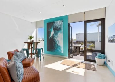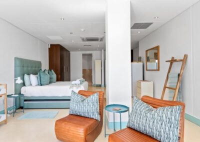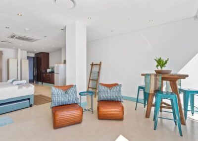 SMB Studio is a modern 1-bedroom, self-catering apartment perfectly situated in the secure and highly sought-after Eden on the Bay complex in beautiful Bloubergstrand, just 29 km from Cape Town International Airport. Located only 300m from the beach and set within the vibrant Eden on the Bay lifestyle centre, guests have direct access to a variety of restaurants offering different cuisines, as well as grocery and convenience stores, clothing boutiques, and unique art and décor shops.